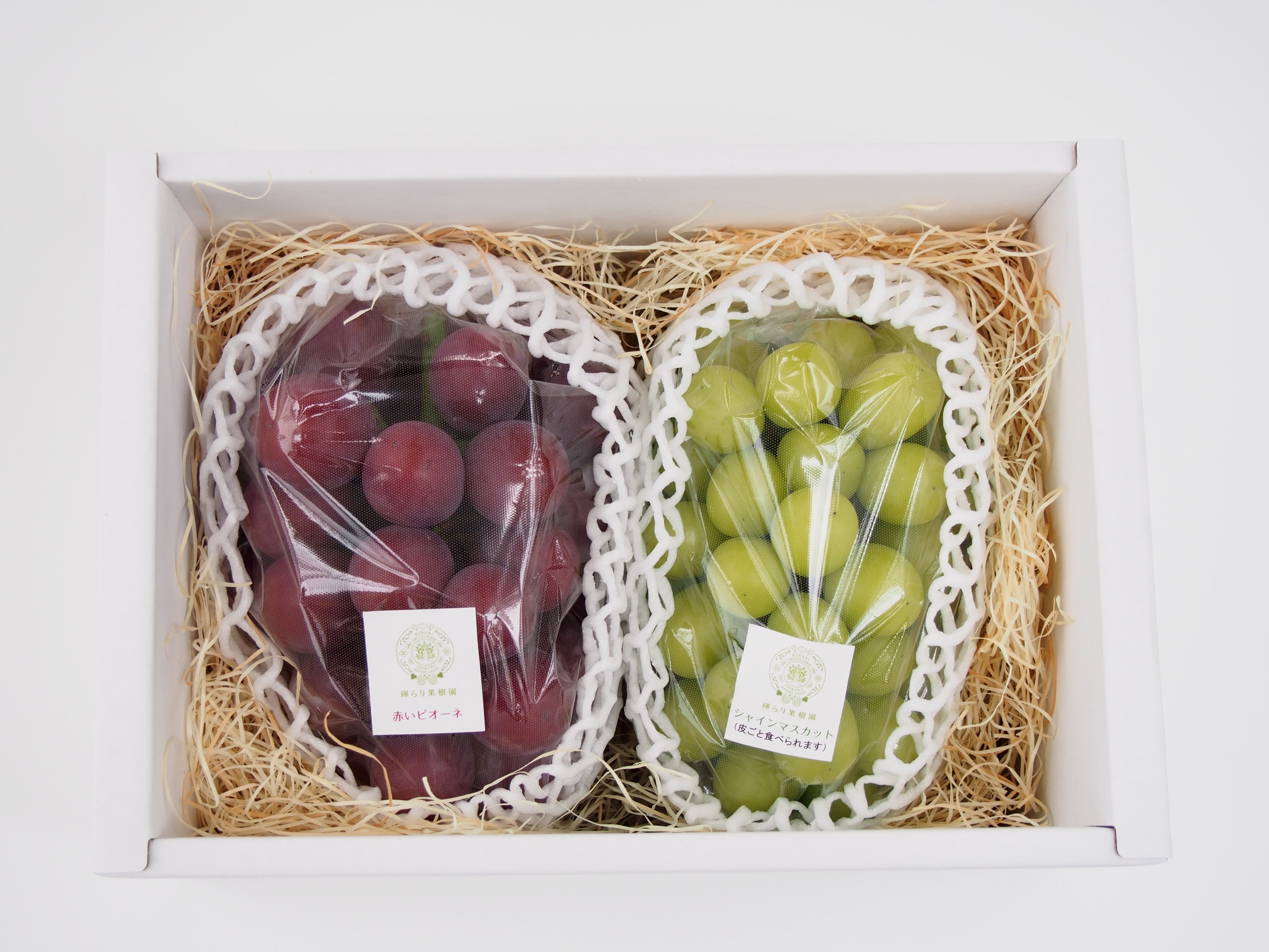 秋ぶどうのシャインマスカットと赤いピオーネを詰め合わせにしました。